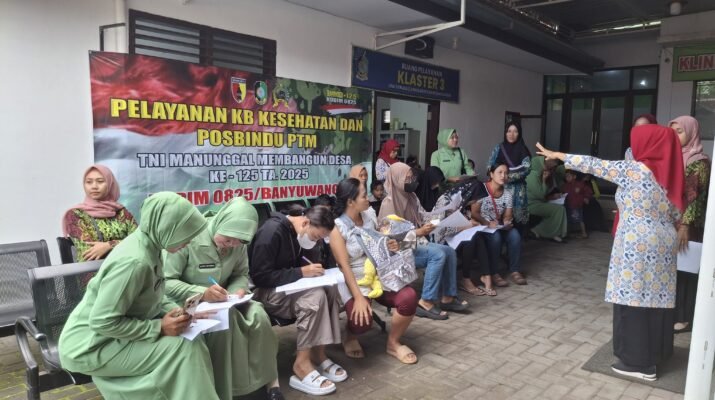 Banyuwangi – Semangat pengabdian kepada masyarakat kembali ditunjukkan dalam kegiatan non-fisik TNI Manunggal Membangun Desa (TMMD) ke-125 Kodim 0825/Banyuwangi. Bertempat di Puskesmas Siliragung, Kamis (1/8), digelar pelayanan Keluarga Berencana (KB) serta pemeriksaan kesehatan melalui Posbindu Penyakit Tidak Menular (PTM) secara gratis bagi warga sekitar.