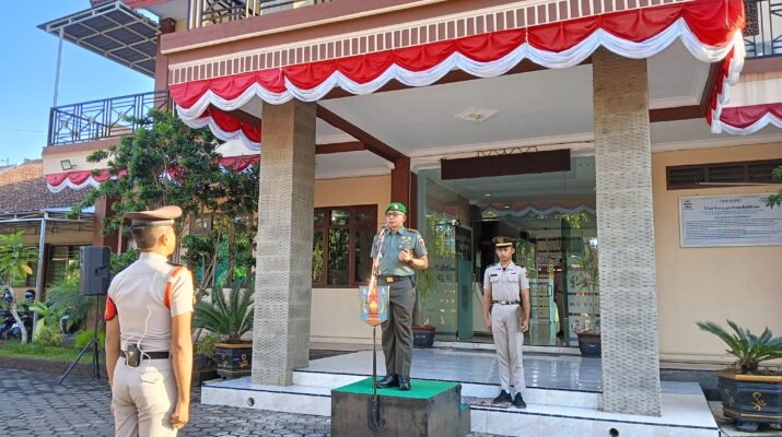Giri, Banyuwangi – Komandan Kodim 0825/Banyuwangi, Letkol Arh Joko Sukoyo, S.Sos., M.Han., memimpin upacara bendera di SMA Negeri 1 Giri Taruna Bangsa, Jalan HOS Cokroaminoto No. 38, Giri, Banyuwangi, pada Senin (11/08/2025). Kegiatan yang berlangsung khidmat ini diikuti oleh seluruh guru, staf, dan siswa-siswi, serta menjadi momen istimewa karena selain memimpin jalannya upacara, Dandim juga memberikan motivasi kepada para pelajar untuk terus semangat meraih cita-cita.