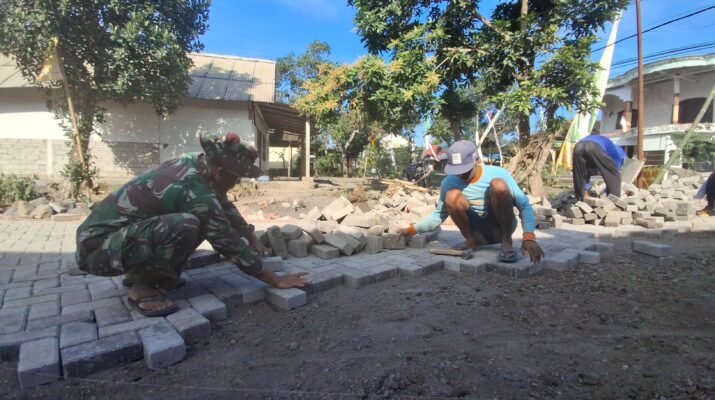 Proses pengerjaan paving jalan ini dilakukan secara bergotong royong antara personel Satgas TMMD dengan warga setempat. Kerja sama yang solid antara TNI dan masyarakat terlihat dari semangat dan antusiasme warga yang ikut membantu proses penataan paving, demi mempercepat penyelesaian pembangunan.