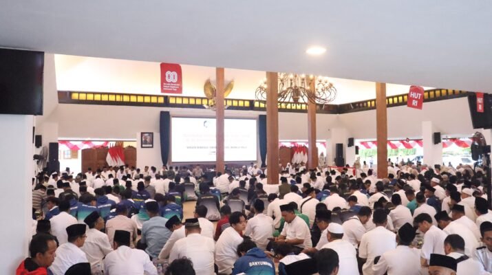 Banyuwangi – Kasdim 0825/Banyuwangi Mayor Kav Suprapto menghadiri acara Tasyakuran dalam rangka memperingati Hari Ulang Tahun Ke-80 Kemerdekaan Republik Indonesia yang mengusung tema “Bersatu Berdaulat, Rakyat Sejahtera, Indonesia Maju”. Kegiatan tersebut dilaksanakan di Pendopo Sabha Swagata Blambangan Banyuwangi, pada Sabtu (16/08/2025).