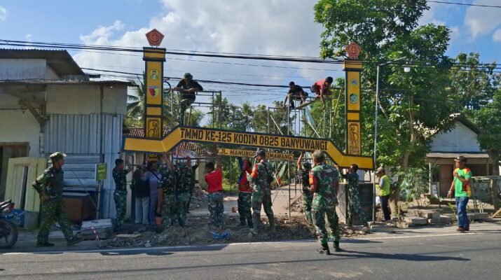 Banyuwangi – Di tengah semangat perayaan Hari Ulang Tahun (HUT) ke-80 Kemerdekaan Republik Indonesia, Satuan Tugas (Satgas) TNI Manunggal Membangun Desa (TMMD) ke-125 Kodim 0825/Banyuwangi menunjukkan dedikasi nyata dengan melaksanakan pemasangan gapura di jalan menuju jembatan Desa Kesilir, Kecamatan Siliragung, Minggu (17/8/2025).