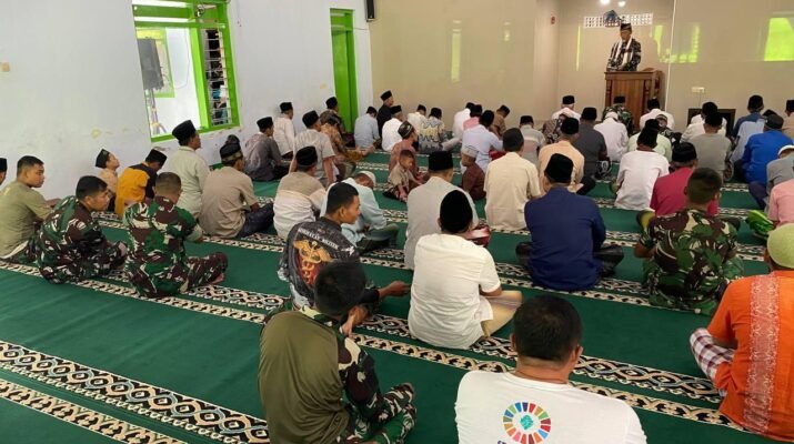 Pabintal Korem 083/Bdj Letda Inf Jaenuri memberikan khutbah Sholat Jumat di Masjid Al-Amin, Desa Lebakharjo, Kecamatan Ampelgading, Kabupaten Malang, Dalam rangka mendukung program TMMD ke-126 Kodim 0818/Malang-Batu. Khutbah yang disampaikan mengangkat penting mengenai bahaya judi online yang tengah marak di masyarakat saat ini.