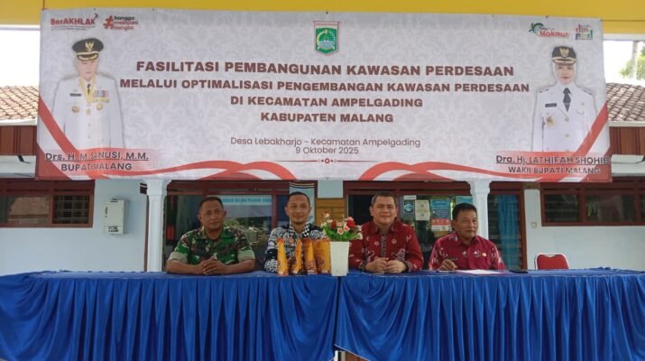 Upaya memajukan kawasan pedesaan kembali digencarkan pada TMMD 126 Lebakharjo Kodim 0818/Malang-Batu bekerjasama dengan pemerintah melalui program fasilitasi pembangunan dan optimalisasi pengembangan kawasan pedesaan di Desa Lebakharjo, Kecamatan Ampelgading, Kabupaten Malang, Jawa Timur, Sabtu (11/10/2025).