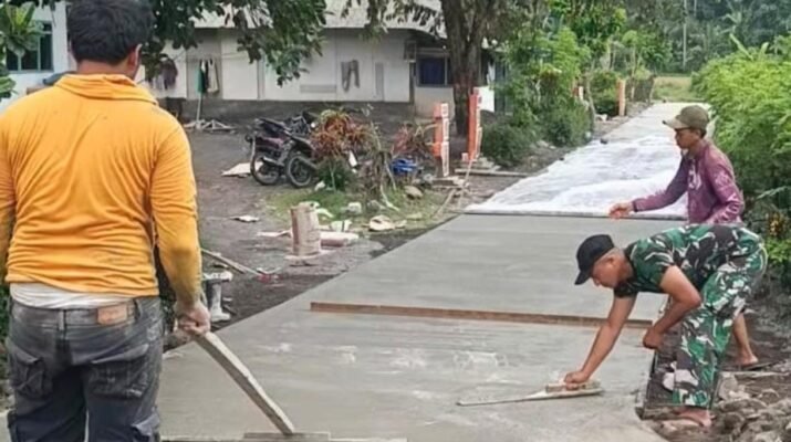 Ampelgading – Semangat gotong royong antara Satgas TMMD ke-126 dan masyarakat Dusun Krajan 1A terus mengalir dalam pengerjaan rabat beton yang menjadi salah satu sasaran fisik pada program TMMD 126 Lebakharjo, Kecamatan Ampelgading, Kabupaten Malang, (10/2025).