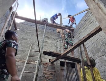 Dalam gambar tampak para prajurit bekerja secara serempak, menggali dan membersihkan tumpukan tanah serta material yang menutup aliran irigasi. Dengan peralatan manual seperti cangkul dan sekop, para anggota TNI terus bergerak cepat memperbaiki jalur air yang selama ini menjadi penopang utama bagi tanaman jagung warga setempat.