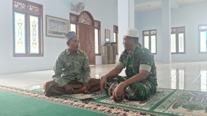 Di dalam mushola yang dindingnya dihiasi poster TMMD itu, obrolan keduanya berlangsung sederhana namun hangat. Bapak Tarmuji menceritakan harapannya agar desa semakin berkembang, sementara Serka Su’in mendengarkan sambil sesekali menanyakan kebutuhan warga.