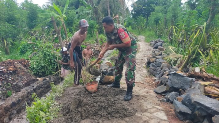 Babinsa Koramil 0825/02 Giri Bersinergi dengan Warga Bangun Plesengan Irigasi, Antisipasi Banjir Musim Hujan